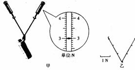 D.在白纸上按一定标度作出两个弹簧测力计的弹力的图示,如图乙所示,根据力的平行四边形定则可求出这两个力的合力 ![]()