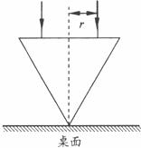 玻璃圆锥,其顶点恰好与桌面接触,圆锥的轴(图中虚线)与桌面垂直,过轴线的截面为等边三角形,如图所示。有一半径为