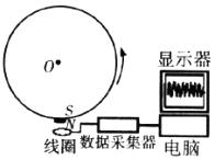 17.(11分)在开展研究性学习的过程中,某同学设计了一个利用线圈测量转轮转速的装置,如图所示,在轮子的边缘贴上小磁体,将小线圈靠近轮边放置,接上数据采集器和电脑(即DIS实验器材).如果小线圈的面积为S,圈数为N匝,小磁体附近的磁感应强度最大值为B,回路的总电阻为R,实验发现,轮子转过