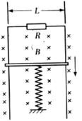 的导体棒与下端固定的竖直轻质弹簧相连且始终保持与导轨接触良好,导轨与导体棒的电阻均可忽略,弹簧的劲度系数为