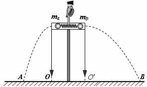 14.某同学用如图所示的装置验证动量守恒定律。在固定的竖直支架上水平固定一中间开孔的圆管,用两小球夹一弹簧置于圆管内,通过小孔向上拉紧系于两球间的细绳,使两小球压缩弹簧,然后用剪刀齐孔剪断细绳,两小球脱离弹簧后从管口沿水平方向弹出,分别落于地面上的