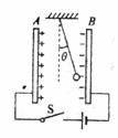 9.平行板电容器的两极板A、B接于电池两极,一带正电小球悬挂于电容器内部,闭合开 关S,电容器充电,这时悬线偏离竖直方向的夹角为