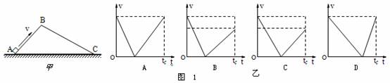 5.有两光滑固定斜面AB和BC相接于B点。A、C两点位于同一水平面上,斜面BC比斜面AB长,如图 1甲所示。一滑块(可视为质点)自A点以一定的初速度上滑,到达B点时速度恰好减为零,紧接着滑块沿BC滑下。设滑块从A点到C点的总时间为 tc 。则在图1乙的四个图象中能正确表示滑块速度的大小随时间变化规律的是 ( )