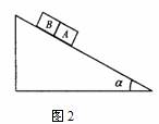 7、如图2所示,一固定斜面上两个质量相同的小物块A和B紧挨着匀速下滑,A与B的接触面光滑。己知A与斜面之间的动摩擦因数是B与斜面之间动摩擦因数的2倍,斜面倾角为α。B与斜面之间的动摩擦因数是 ( )