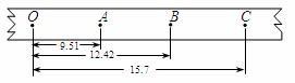 11、在用落体法验证机械能守恒定律时,某同学按照正确的操作选得一条理想纸带如下图。其中O是起始点,A、B、C是打点计时器连续打下的3个点。该同学用毫米刻度尺测量O到A、B、C各点的距离,并记录在图中(单位cm)。