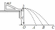 12.某同学用下图装置做验证动量守恒定律的实验.先将a球从斜槽轨道上某固定点处由静止释放,在水平地面上的记录纸上留下压痕,重复10次;再把同样大小的b球放在斜槽轨道末端水平段的最右端附近静止,让a球仍从原固定点由静止开始滚下,和b球相碰后,两球分别落在记录纸的不同位置处,重复10次.