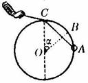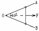 AOB等于60°, 杆上分别套着两个质量都是m的小环,两环由可伸缩的轻质弹性绳连接,若在绳的中点施以沿