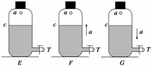 7.如图所示,完全相同的容器E、F、G,小孔a与大气相通,容器口封闭,T为阀门,水面的高度相同.在E静止、F、G同时竖直向上和向下以加速度a运动的同时打开三个容器的阀门,则以下说法中正确的是( )