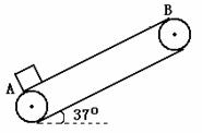 12.如图所示,传送带与地面成夹角θ=37°,以10m/s的速度顺时针转动,在传送带下端轻轻地放一个质量m=0.5┧的物体,它与传送带间的动摩擦因数μ=0.9,已知传送带从A→B的长度L=50m,则物体从A到B需要的时间为多少?