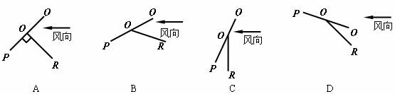 15.春天在广场上有许多人放风筝,会放风筝的人,可使风筝静止在空中。图中的四幅图中,PQ代表风筝截面,OR代表风筝线,风向水平。在图所示的四种情况中,风筝可能处于静止状态的是 ( )
