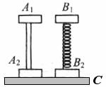 16.物块A1、A2、B1、B2的质量均为m, A1、A2用刚性轻杆连接,B1、B2用轻质弹簧连接。两个装置都放在水平的支托物上C,处于平衡状态,如图所示。今突然迅速地撤去支托物C,让物块下落。在撤去支托物的瞬间,A1、A2所受到的合力分别为F A1和F A2,B1、
