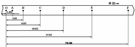 ① 请由上图中纸带上记录测量的数据,求出该次实验中:C点对应的瞬时速度vC = ___