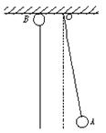 13.如图所示,OA为一单摆,B是穿在一根较长细线上的小球(可视为质点),让OA偏离竖直方向一很小角度,在放手让A球向下摆动的同时,另一小球B从O点等高处由静止开始下落,A球首次摆到最低点时两球恰好在同一水平面上,试求:B球下落时受到的细线的阻力与B球重力之比.(取π2=10)