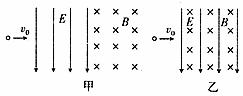 ;若把电场和磁场正交叠加,如乙图所示,粒子仍以初速度