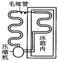 4、如图为电冰箱的工作原理图,压缩机工作时,强迫制冷剂在冰箱内外的管道中不断循环.那么,下列说法中正确的是