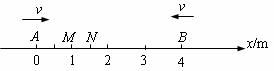10、如图所示,沿x轴正方向传播的横波,传到A点的同时,沿x轴负方向传播的横波恰传到B点,这一时刻A、B质点的速度方向相同,两列波波速相同,波长都是2m,质点的振幅都是2cm,继续传播足够长的时间以后