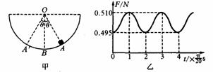 ,均小于100,图乙表示滑块对器壁的压力F随时间t变化的曲线,且图中t=0为滑块从A点开始运动的时刻。试根据力学规律和题中(包括图中)所给的信息,求小滑块的质量、容器的半径及滑块运动过程中的守恒量。(g取10m/s2)