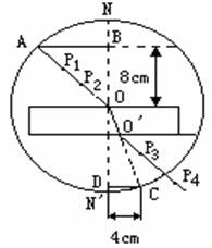 14.某同学由于没有量角器,他在完成了光路图以后,以O点为圆心,
