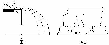 15.同学用如图1所示装置通过半径相同的A、B两球的碰撞来验证动量守恒定律,图1中PQ是斜槽,QR为水平槽,实验时先使A球从斜槽上某一固定位置G由静止开始滚下,落到位于水平地面的记录纸上,留下痕迹,重复上述操作10次,得到10个落点痕迹,再把B球放在水平槽上靠近槽末端的地方,让A球仍从位置G由静止开始滚下,和B球碰撞后,A、B球分别在记录纸上流下各自的落点痕迹,重复这种操作10次,图1中O点是水平槽末端R在记录纸上的垂直投影点。B球落点痕迹如图2所示,其中米尺水平放置,且平行于G、R、O所在平面,米尺的零点与O对齐。