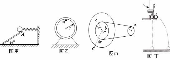 如图乙所示,将其中一质量为m的小球仍与一长为L的细绳连接,放在表面光滑的正圆锥体表面,上端可绕圆锥顶点自由转动。圆锥体放在水平面上,其轴线沿竖直方向,圆锥母线与轴线之间夹角α为30°,试求: