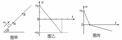18.如图甲所示,质量为m的物块沿足够长的粗糙斜面底端以初速度v0上滑先后通过A、B,然后又返回到底端。设从A到B的时间为t1,加速度大小为a1,经过A的速率为v1,从B返回到A的时间为t2,加速度大小为a2,经过A的速率为v2,则正确的是( )