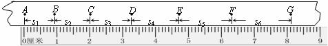 (2)(6分)如图所示,某同学在做“研究匀变速直线运动”实验中,用使用f=50Hz交流电的打点计时器得到表示小车运动过程的一条清晰纸带,纸带上两相邻计数点间还有四个实验点未画出,其中s1、s2、 s 3、 s 4、 s 5、s 6表示相邻计数点间的距离。则D点处瞬时速度的大小表达式是 ,小车运动的加速度计算表达式为 .小车加速度a大小为 m/s2(保留两位有效数字)