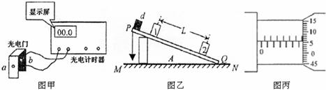 (3)(10分)像打点计时器一样,光电计时器也是一种研究物体运动情况的常用计时仪器,其结构如图甲所示,a、b分别是光电门的激光发射和接收装置,当有物体从a、b间通过时,光电计时器就可以显示物体的挡光时间(从运动物块开始挡住ab间光线至结束的时间).