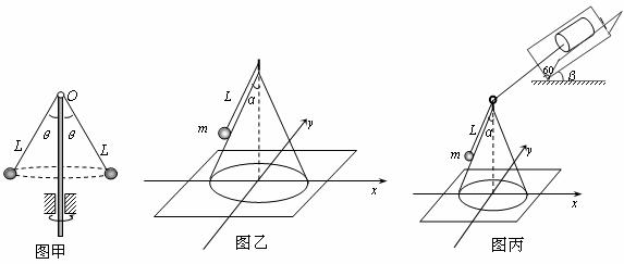 25.(19分)如图甲所示,将质量为m的两个小球(可看成质点),用长为L的两根细软线拴连,线的上端连于O点且绕O点自由转动时与竖直方向夹角为θ。