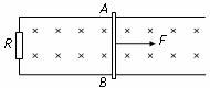 12.如图所示,金属棒AB垂直跨搁在位于水平面上的两条平行光滑金属导轨上,棒与导轨接触良好,棒AB和导轨电阻均忽略不计。导轨左端接有电阻R,垂直于导轨平面的匀强磁场向下穿过平面。现以水平向右的恒定外力F拉着棒AB向右移动, t秒末棒AB速度为v,移动的距离为l,且在t秒内速度大小一直在变化,则下列判断正确的是 ( )