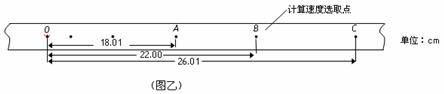 下图是实验中得到的一条纸带,点O为纸带上的起始点,A、B、C是纸带的三个计数点,相邻两个计数点间均有4个点未画出,利用刻度尺测得A、B、C到O的距离如图所示,已知所用交变电源的频率为50Hz,问: