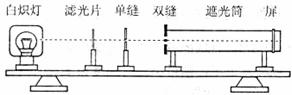 (1)实验装置中滤光片的作用是 。若将滤光片拿掉,干涉现象是否消失