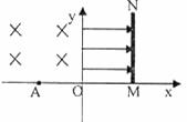 的粒子(重力忽略不计),若自距原点O为L的A点,以一定的初速度V0垂直x轴进入磁场,则粒子恰好到达O点而不进入电场,现该粒子仍从A点进入磁场,但初速度大小为原来的4倍,为使粒子进入电场后垂直射向挡板MN,且到达挡板时速度恰好为零。求: