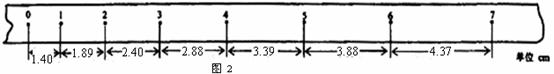 (1)图2给出的是实验中获取的一条纸带的一部分:0、1、2、3、4、5、6、7是计数点,每相邻两计数点间还有4个打点(图中未标出),计数点间的距离如图所示。根据图中数据计算的加速度a = (保留三位有效数字)。