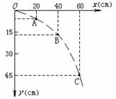 14.如下图所示是在“研究平抛物体的运动”的实验中记录的一段轨迹.已知物体是从原点O水平抛出,经测量C点的坐标为(60,45).则平抛物体的初速度v0=______m/s,物体经过B点时的速度vB=_______m/s。(取g=