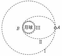 ,飞船在距月球表面高度为3R的圆形轨道Ⅰ运动,到达轨道的A点点火变轨进入椭圆轨道Ⅱ,到达轨道的近月点B再次点火进入月球近月轨道Ⅲ绕月球作圆周运动。