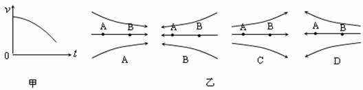 10.A、B是一条电场线上的两个点,一带负电的微粒仅在电场力作用下以一定初速度从A点沿电场线运动到B点,其V-t图像如图甲所示。则这一电场可能是图乙中的( )