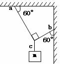 16.用三根经绳将质量为m的物体悬挂在空中,如图所示,已知绳ac和bc与竖直方向的夹角分别为30°和60°,则ac和bc绳中的拉力分别为