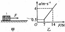 19.如图甲所示,物体原来静止在水平面上,用一水平力F拉物体,在F从0开始逐渐增大的过程中,物体先静止后做变加速运动,其加速度a随外力F变化的图象如图乙所示,根据图乙中所示的数据可计算出