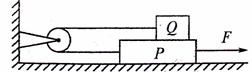 ,两物块的质量都是m,滑轮的质量、滑轮轴上的摩擦都不计。若用一水平向右的力F拉P使它做匀速运动,则F的大小为