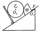 圆的柱状物体甲放在斜面上,半径与甲相等的光滑圆球乙被夹在甲与挡板之间,没有与斜面接触而处于静止状态。如图所示。现在从球心O1处对甲放加一平行于斜面向下的力F,使甲沿斜面方向极其缓慢地移动,直至甲与挡板接触为止。设乙对挡板的压力为F1,甲对斜面的压力为F2,则在此过程中