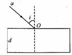 (2)如图所示,由红、紫两种单色光组成的光束a,以入射角i从平行玻璃板上表面O点入射。已知平行玻璃板厚度为d,红光和紫光的折射率分别为n1和n2,真空中的光速为c,试求: