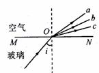 (1)如图所示,一束复色光以入射角i从玻璃界面MN射向空气时分成a、b、c三束光,则下列说法正确的是( )