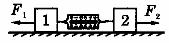 4.物体A?B放在光滑的水平面上并用轻质弹簧做成的弹簧秤相连,如图所示,今对物体A ?B分别施以方向相反的水平力F1?F2,且F1大于F2,则弹簧秤的示数 ( )
