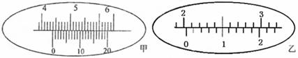 11.用游标为20分度的游标尺测定一个圆筒的深度时,卡尺上部分刻度的示数如图甲所示;用游标为50分度的卡尺测定该圆筒的外径时,卡尺上部分刻度的示数如图乙所示,分别读出它们的示数。图甲(游标为20分度)的读数是____________;图乙(游标为50分度)读数是__________