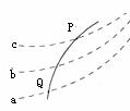 8.如图所示,虚线 a 、 b 、 c 代表电场中的三个等势面,相邻等势面之间的电势差相等,即Uab=Ubc,实线为一带正电的质点仅在电场力作用下通过该区域时的运动轨迹,P 、Q 是这条轨迹上的两点,据此可知 ( )