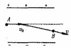 9.如图所示,平行金属板内有一匀强电场,一个电量为q 、质量为m的带电粒子(不计重力)、以v0从A点水平射入电场;且刚好以速度v从B点射出,则 ( )