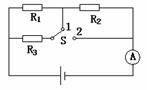 15.如图所示电路中,电阻R1=R2=3Ω,R3=6Ω,S扳至1时,电流表的示数为
