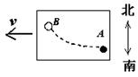 4.如下图(俯视图)所示,以速度v匀速行驶的列车车厢内有一水平桌面,桌面上的B处有一小球.若车厢中的旅客突然发现小球沿图中虚线由B向A运动.则由此可判断列车 ( )