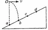 6.如下图所示,斜面上有a、b、c、d四个点,ab=bc=cd.从a点正上方的O点以速度v水平抛出一个小球,它落在斜面上b点.若小球从O点以速度2v水平抛出,不计空气阻力,则它落在斜面上的 ( )