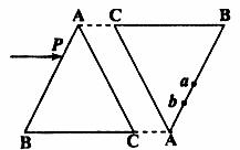 8.如下图所示,两块相同的玻璃等腰三棱镜ABC置于空气中。两者的AC面相互平行放置,由红光和蓝光组成的细光束平行于BC面从P点射入,通过两棱镜后变为从a、b两点射出的单色光。对于这两束单色光,下列判断正确的是 ( )